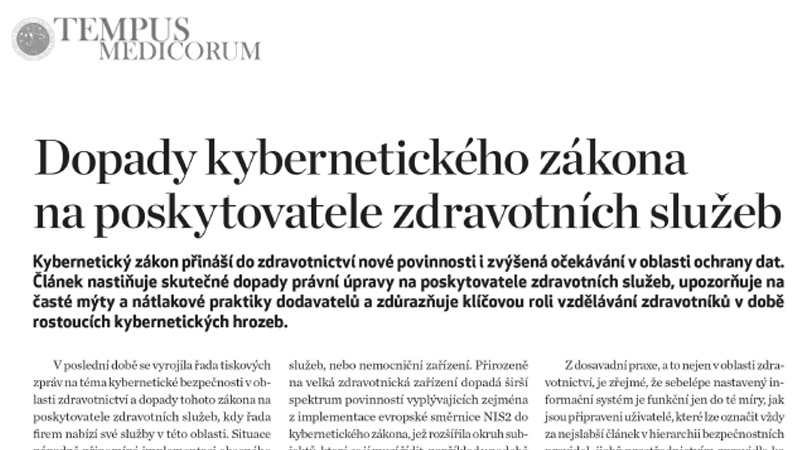 Publikování odborného článku pro časopis České lékařské komory týkajícíse kybernetické bezpečnosti.
